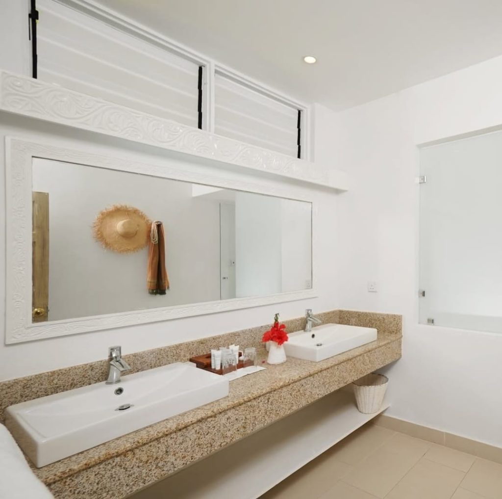 - Empty surfaces adjoining washbasin in all bathrooms
