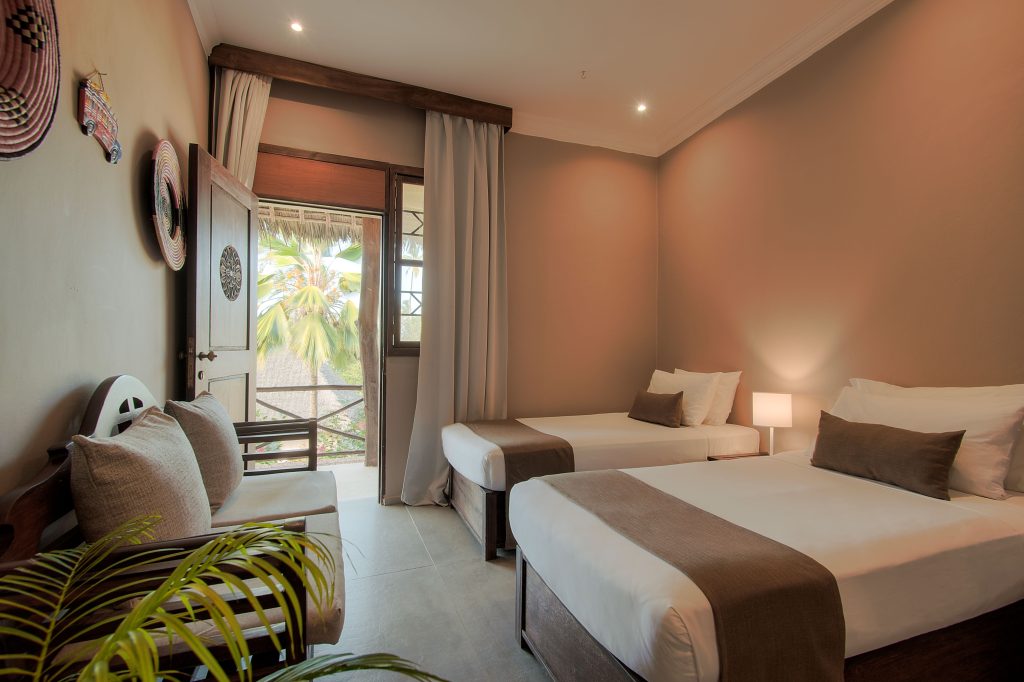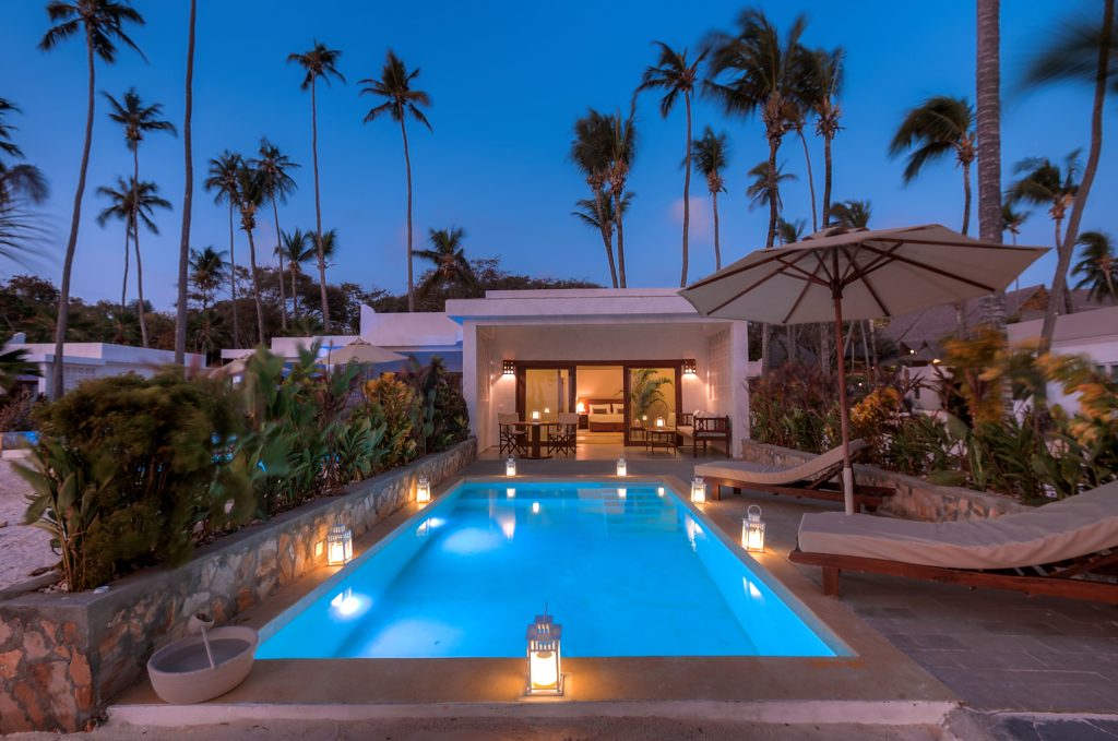 Diamonds Mapenzi Beach is a five-star all-inclusive resort on Zanzibar’s Kiwengwa Beach, set in tropical gardens overlooking the Indian Ocean. It offers garden rooms, superior rooms, family rooms, and beach villas with air-conditioning, ceiling fans, daily minibar refill, and Wi-Fi in villas and public areas.