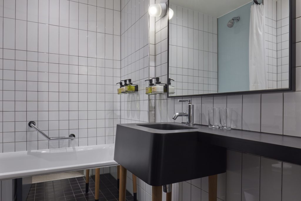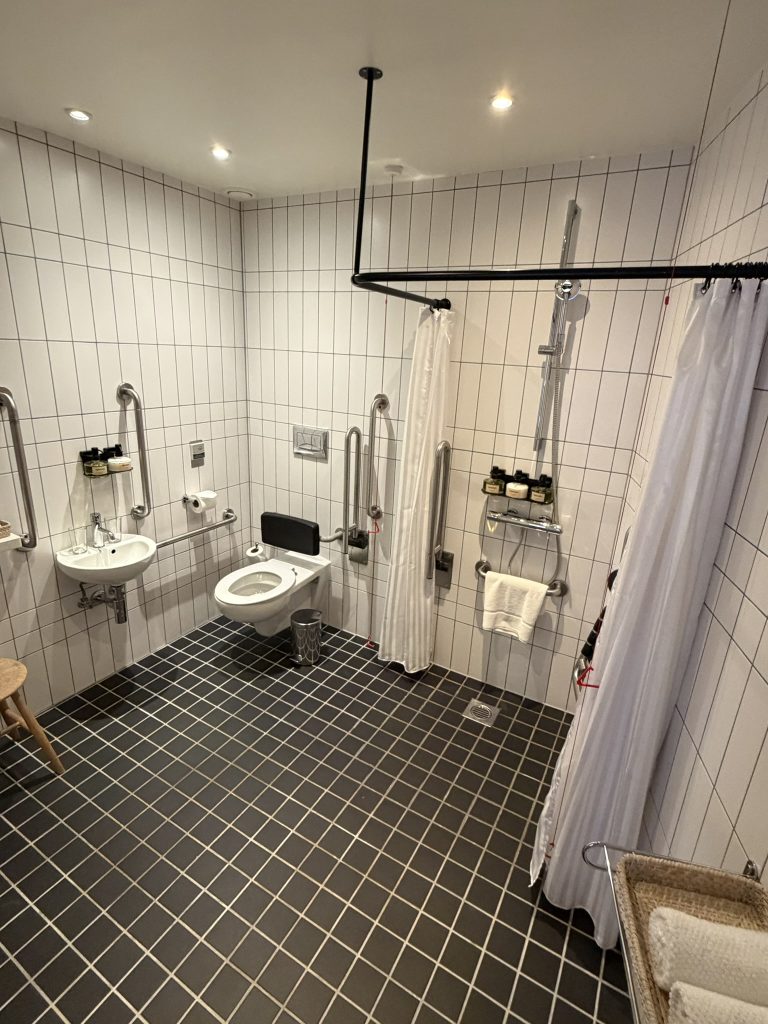 - Bathroom bins reachable from wheelchair in accessible rooms