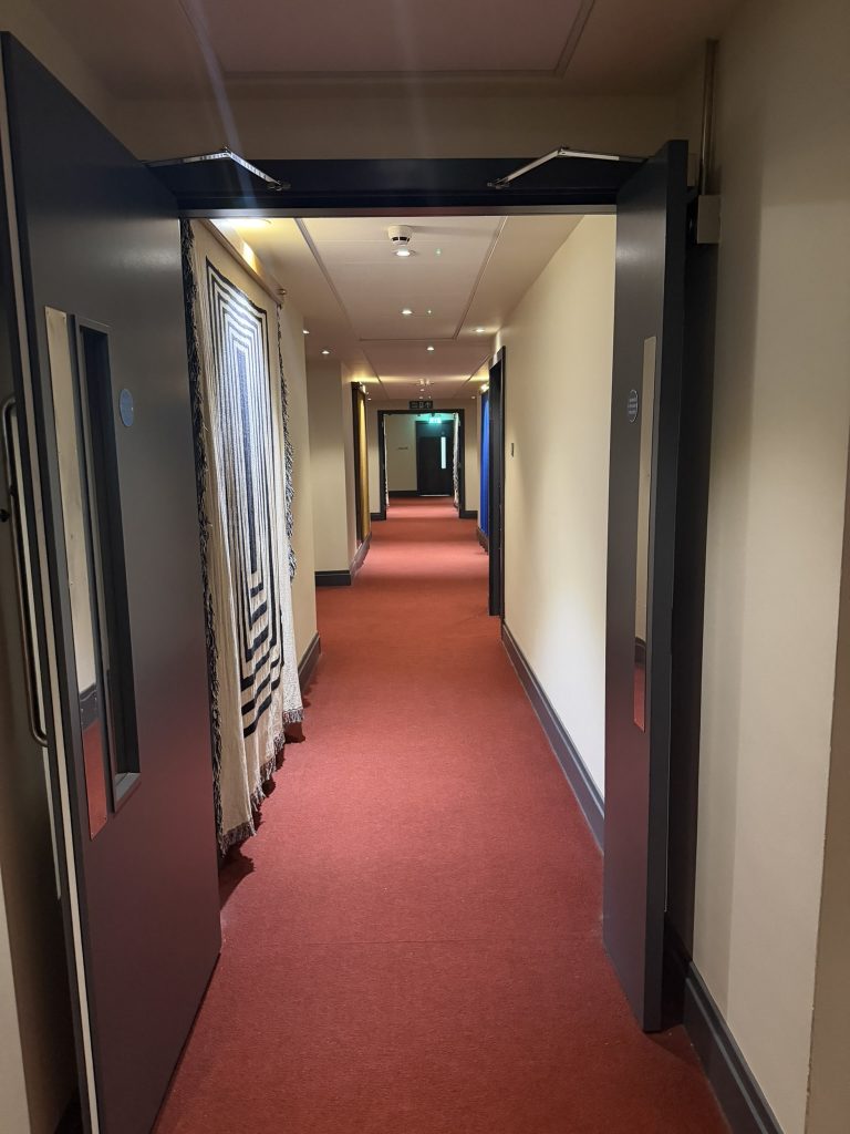 - There is a fully non electric door route from hotel entryway to a hotel room