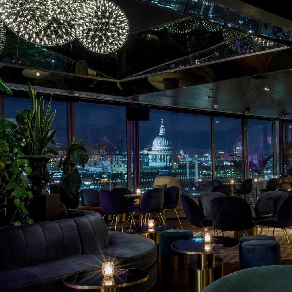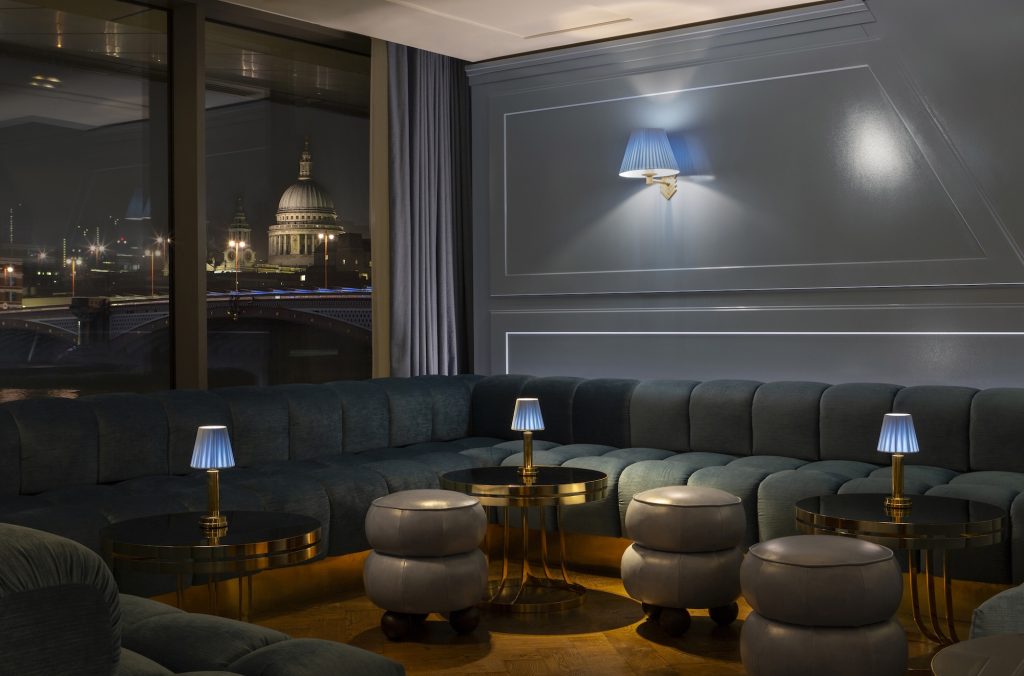 The iconic Sea Containers Restaurant spreads across the scenic river side of the bottom floor, with stunning waterside views and a vibrant, seasonal menu (think: oysters, pan-fried salmon, and burgers) designed to be shared. Bottomless brunches with Prosecco or Bloody Marys characterise lively weekends, while right next door, the Lyaness Bar offers expertly crafted and highly creative cocktails from one of London’s best cocktail minds. Those in search of the London skyline should navigate o the top floor, where the 12th Knot Bar offers a lively terrace lush with plants and views of the City and St Paul’s alongside a picnic-themed menu of bites and drinks.