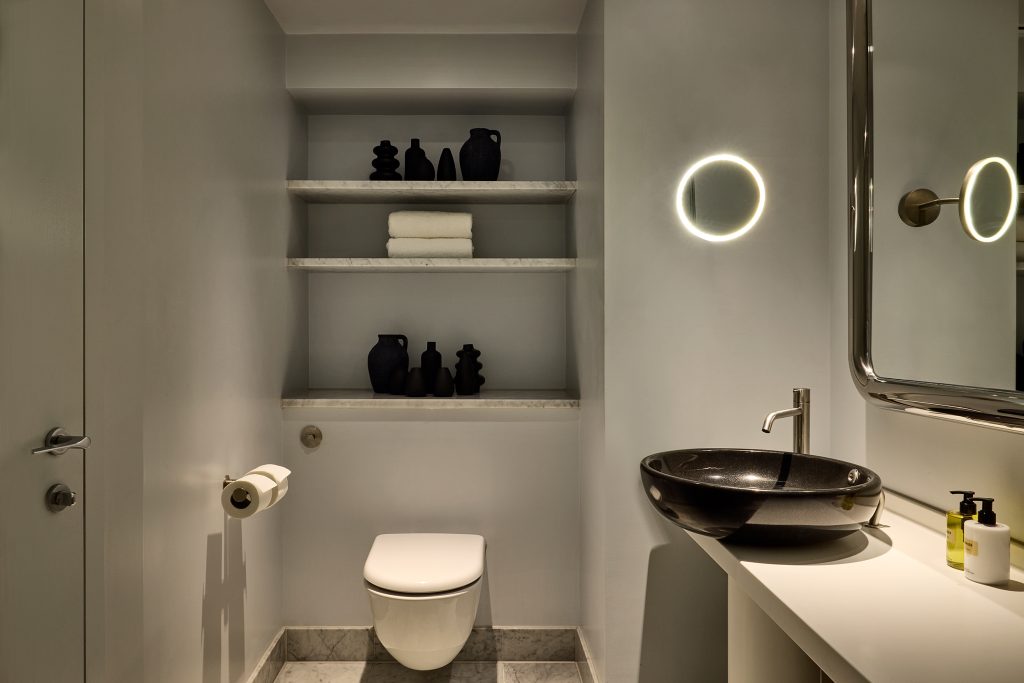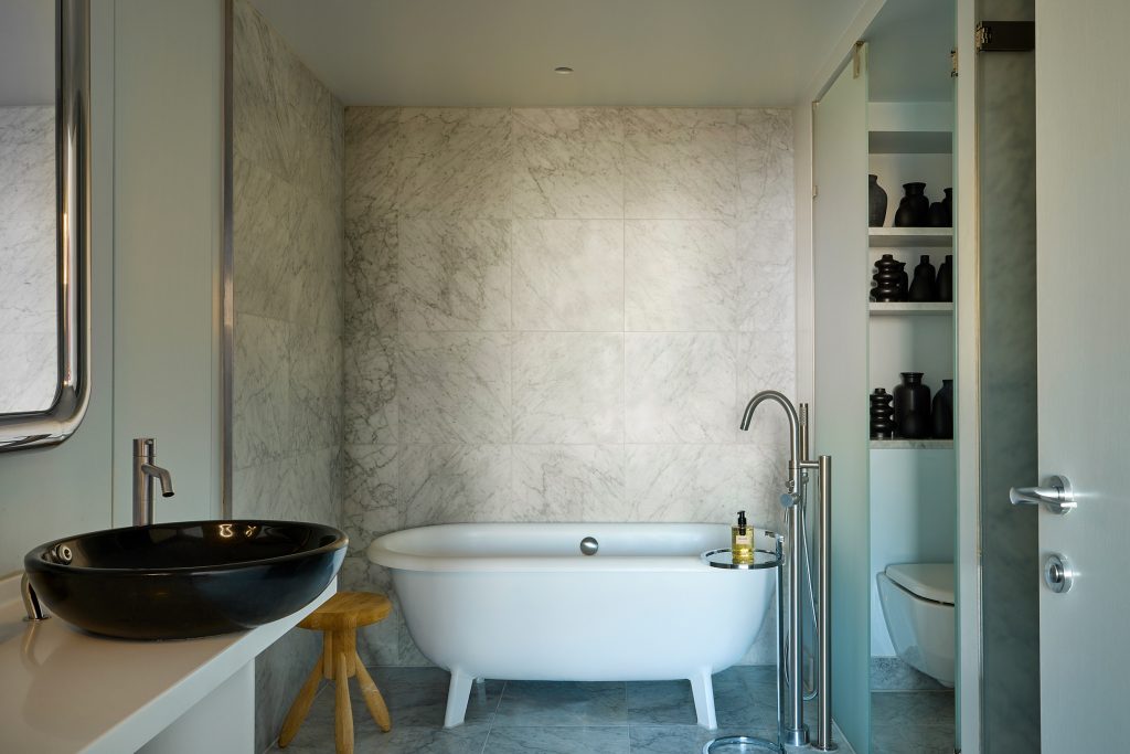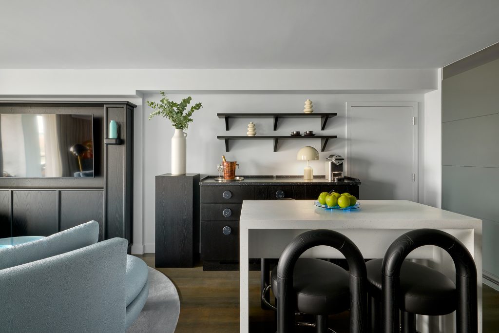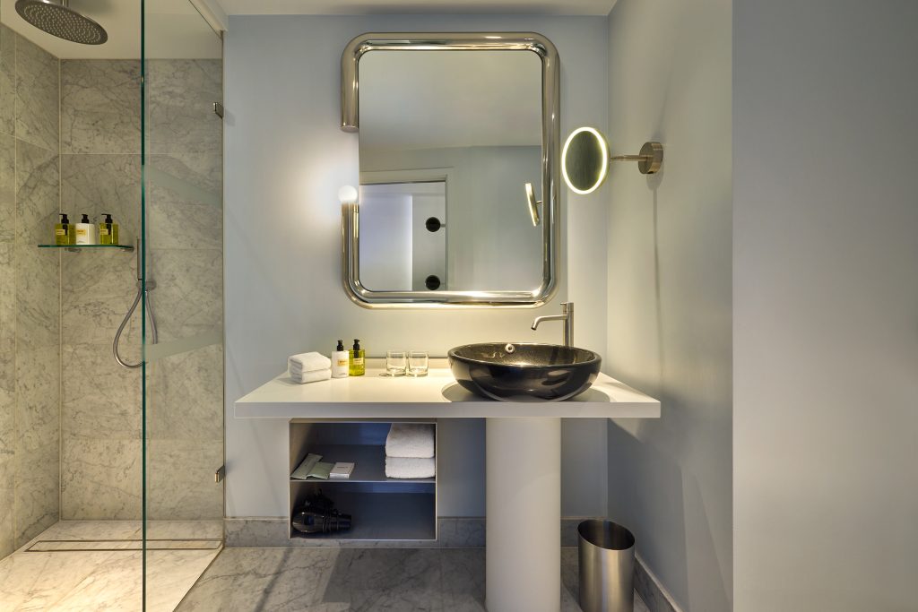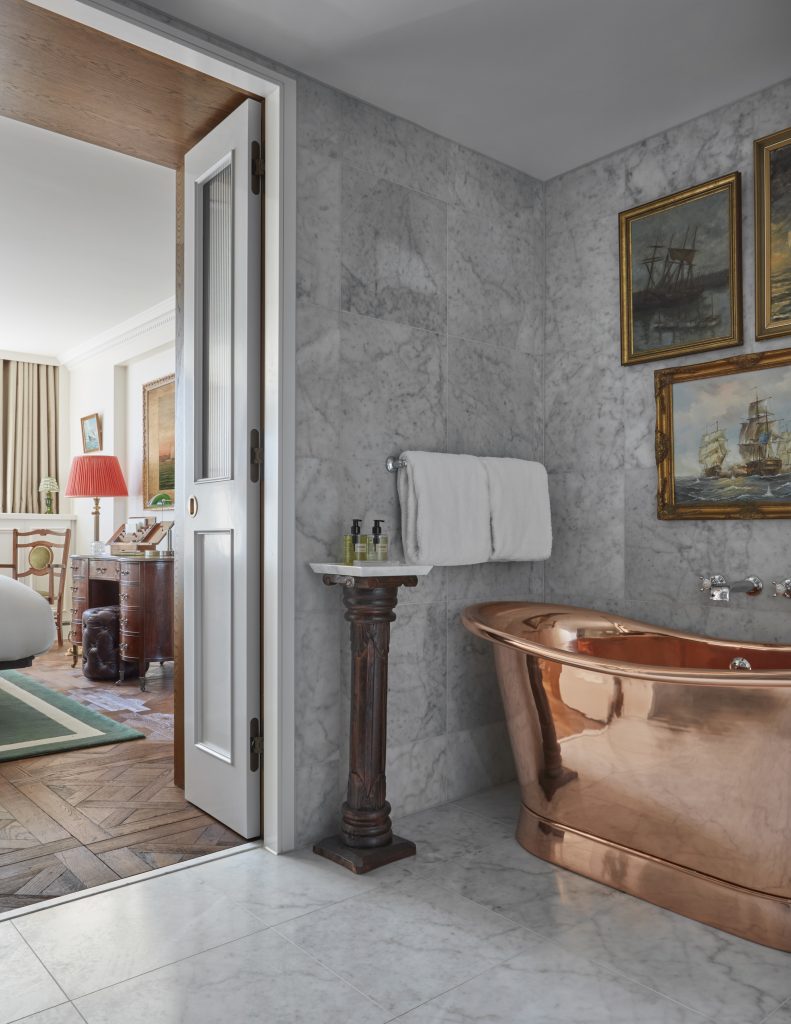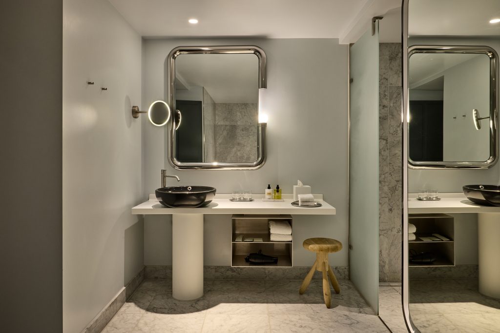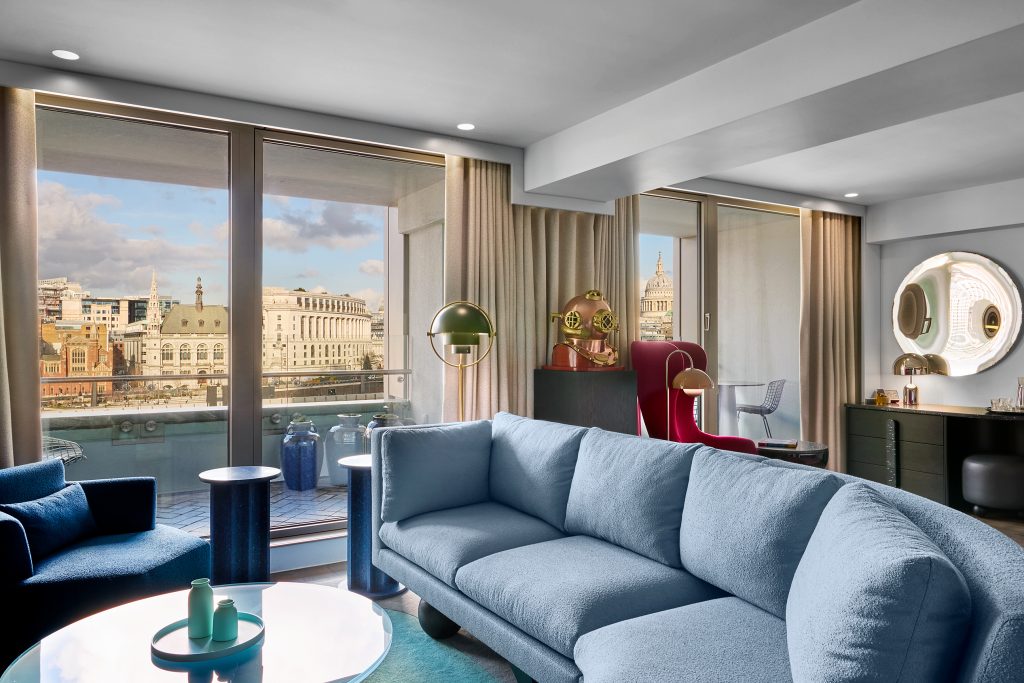 Sea Containers London is at 20 Upper Ground, South Bank, London SE1. Its 354 rooms and suites: Standard, Superior, Double Double, Cabin Suites (Art Deco, Edwardian, Mid-Century, and Dynasty), Riverview Balcony Suites, and Apartments, styled around 1920s transatlantic ocean liners. More than 100 rooms have Thames river views. All rooms have air-conditioning, minibar, and Wi-Fi.