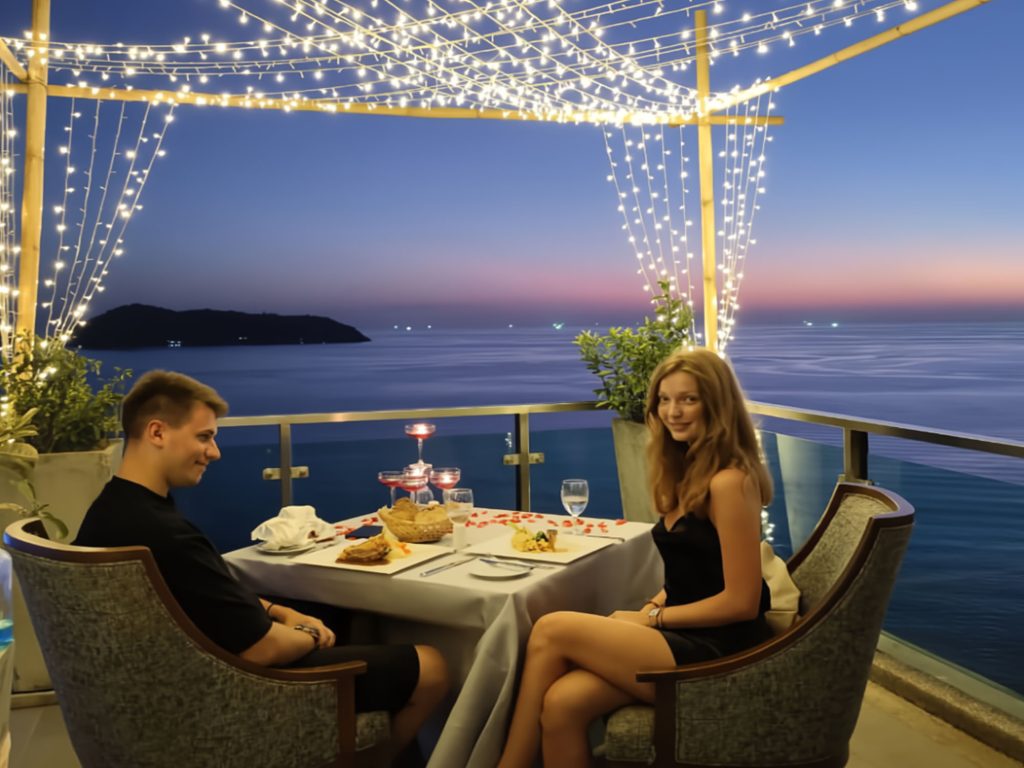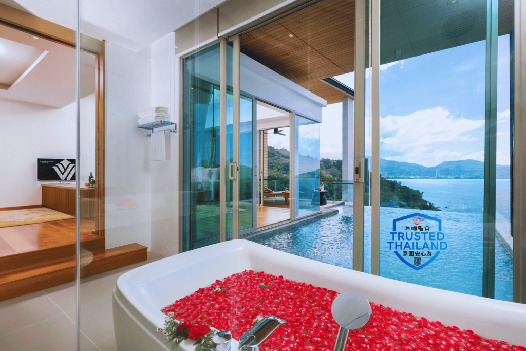 The resort emphasises privacy and sea-facing spaces, and is often chosen for romantic stays, including honeymoons and anniversaries. Facilities include two outdoor pools, Zana Spa, a fitness centre and dining at Latitude 98, Infiniti Lobby Bar, The Deck and Thabtim Cafe. The hotel notes limited accessibility due to its hillside layout.